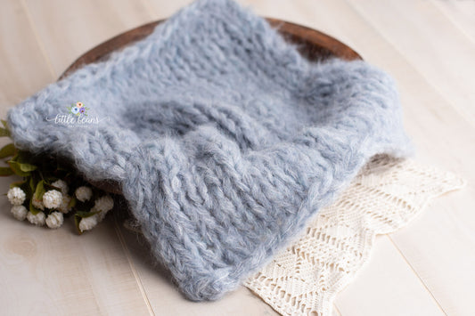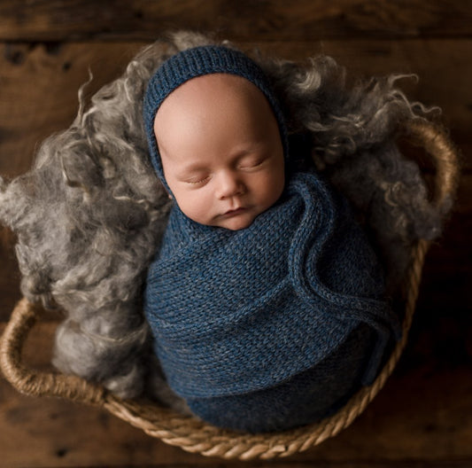 Denim Blue Alpaca Bonnet, Sleepy Hat, or Wrap