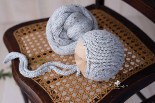 Pale Blue Grey Tweed Bonnet and Wrap - Preorder